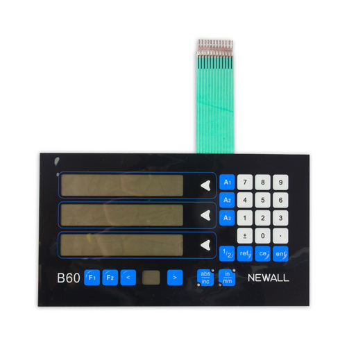 柔性薄膜開關是薄膜開關的典型形式。這類薄膜開關之所以稱為柔性,是因為該薄膜開關的面膜層、隔離層、電路層全部由各種不同性質的柔性薄膜所組成。柔性薄膜開關的電路層,均采用電器性能良好的聚酯薄膜(PET)作為開關電路圖形的載體,此層也分裝手感彈片、上下電路。由于聚酯薄膜所具有性質的影響,使得該薄膜開關具有良好的絕緣性、耐熱性、抗折性和較高的回彈性。開關電路的圖形,包括開關的聯機及其引出線均采用低電阻,低溫條件下固化的導電性涂料印刷而成。因此,整個薄膜開關的組成,具有一定的柔軟性,不僅適合于平面體上使用,還能與曲面體配合。柔性薄膜開關引出線與開關體的本身是一體的,在制作群體開關的聯機時,將其匯集于薄膜的某一處,并按設計指定的位置和標準的線距向外延伸,作為柔軟的、可任意彎曲的、密封的引出導線與整機的后置電路相連。